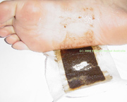 4. Paste the whole thing firmly onto a clean sole or body area. Remove pads the next morning and wash feet/body area thoroughly. Discard used pads – do not reuse.